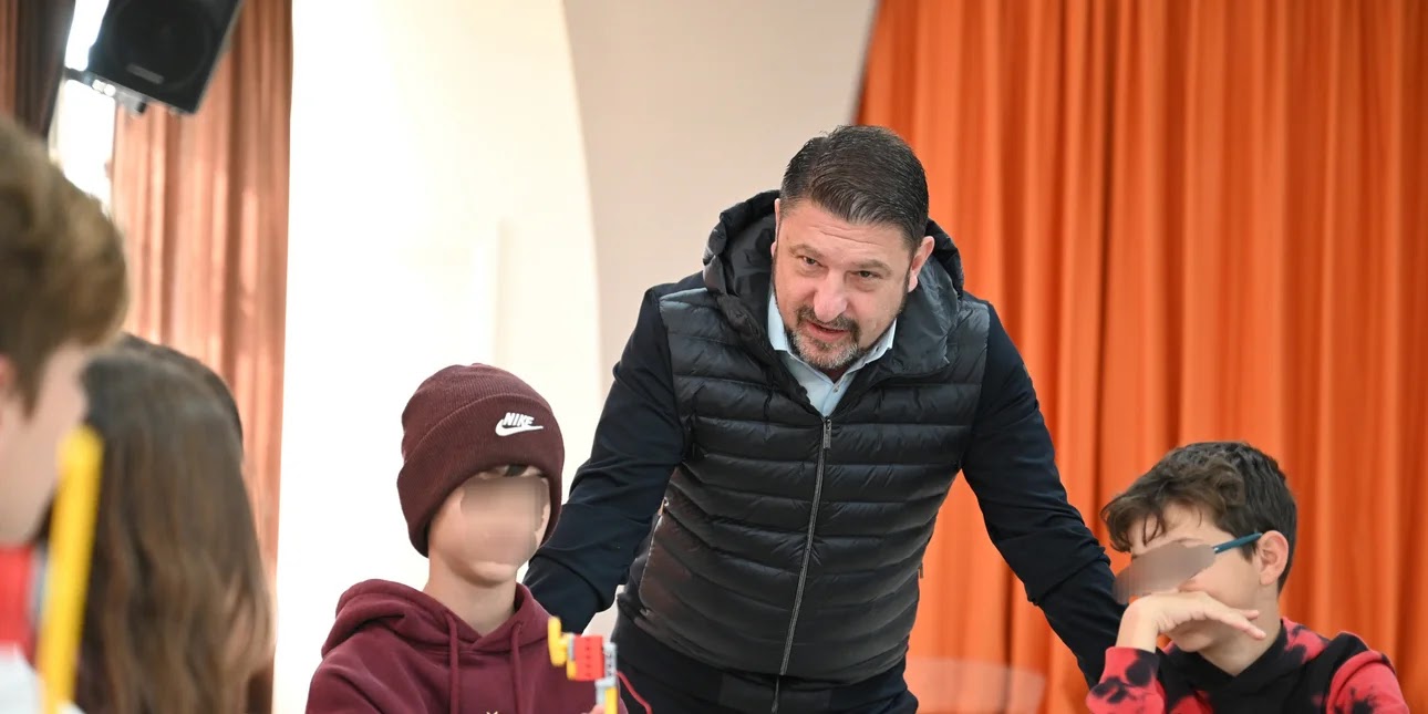 Ο Περιφερειάρχης Αττικής παρέδωσε στους εκπαιδευτικούς οκτώ εκπαιδευτικά πακέτα και συμμετείχε μαζί με τα παιδιά στη συναρμολόγηση της ρομποτικής κατασκευής.