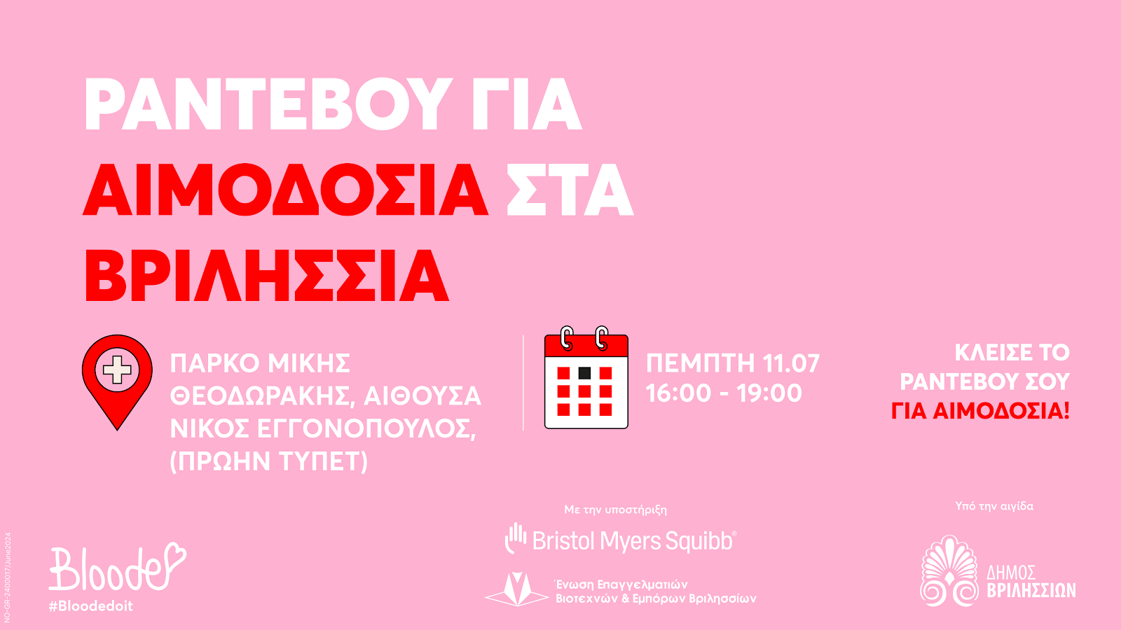 κερδοσκοπική πρωτοβουλία Bloode διοργανώνει απογευματινή εθελοντική αιμοδοσία στις 11