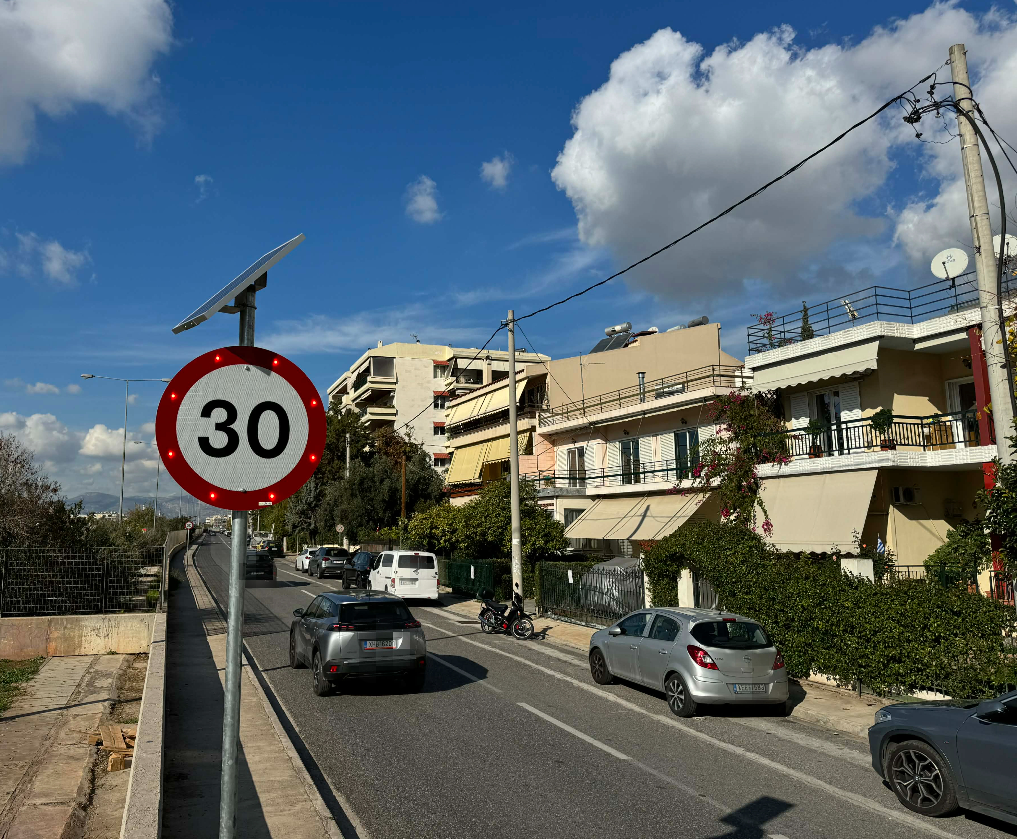 Οι συγκεκριμένες πινακίδες, οι οποίες λειτουργούν αποκλειστικά με ηλιακή ενέργεια, διαθέτουν παλλόμενα φώτα led καθιστώντας την ένδειξη του επιτρεπτού ορίου ταχύτητας των 30 χιλιομέτρων πιο εμφανή και άμεσα αντιληπτή από τους οδηγούς. Η χρήση τους συμβάλλει ουσιαστικά στη μείωση της ταχύτητας, καθώς οι φωτεινές ενδείξεις τραβούν περισσότερο την προσοχή και υπενθυμίζουν με σαφήνεια τους κανόνες οδικής κυκλοφορίας. Παράλληλα, η αξιοποίηση της ηλιακής ενέργειας μειώνει το ενεργειακό τους αποτύπωμα.