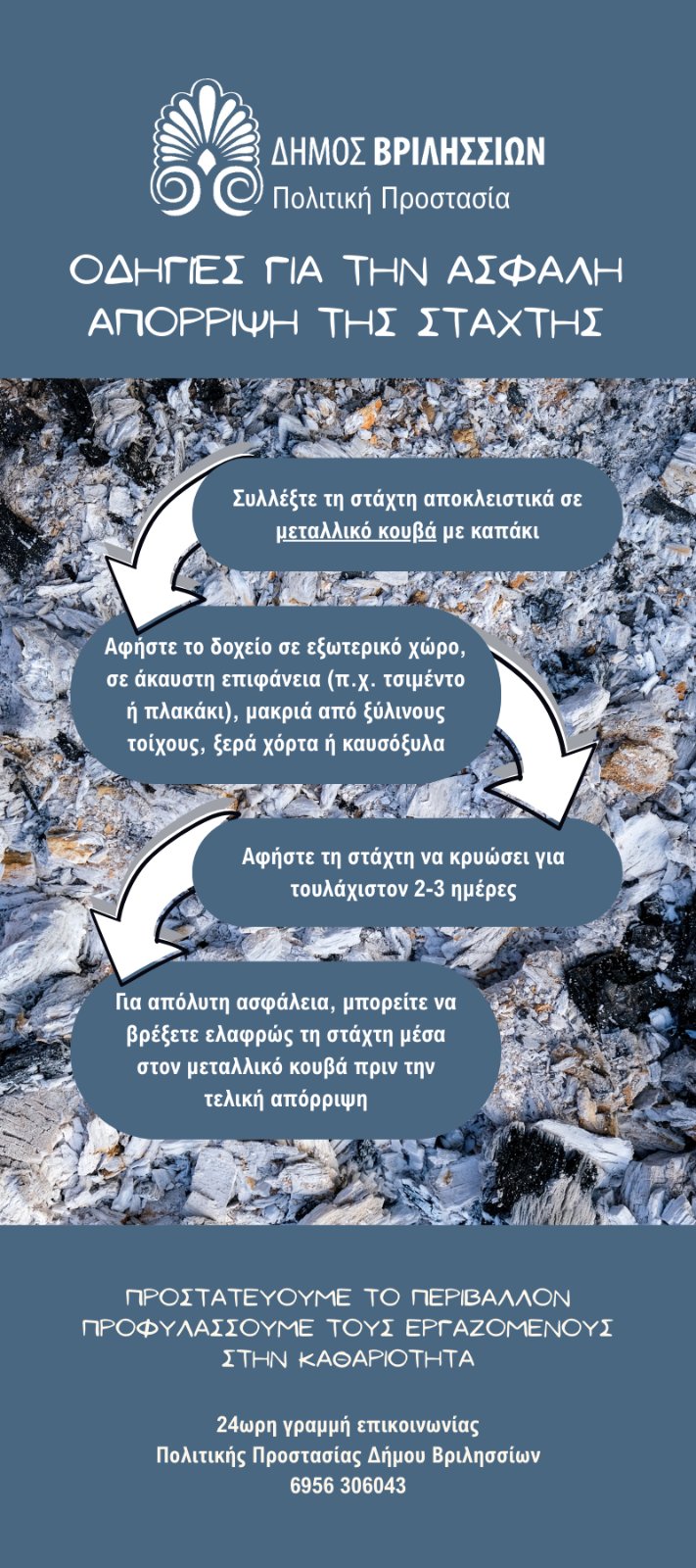 Δεν πετάμε τις στάχτες σε χώρους πρασίνου, πάρκα και κάδους απορριμμάτων, αν δεν έχουν γίνει οι ανωτέρω ενέργειες.