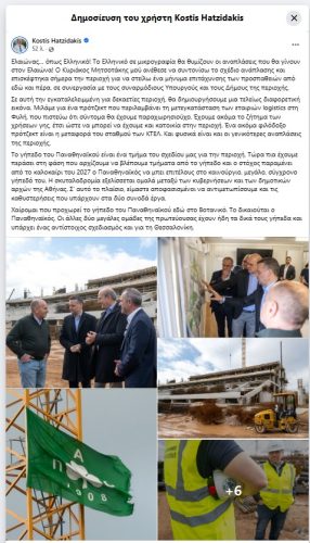 Σε ανάρτησή του σημείωσε ότι ο πρωθυπουργός Κυριάκος Μητσοτάκης του ανέθεσε τον συντονισμό του σχεδίου, με στόχο –όπως ανέφερε– να υπάρξει από εδώ και πέρα ταχύτερη πρόοδος σε συνεργασία με τους συναρμόδιους υπουργούς και τους δήμους της περιοχής.